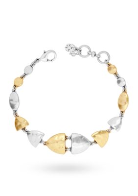 Two-Tone Six-Pointed Star Link Bracelet Add a twinkling star to your look with this four-strand two-tone link bracelet. Crafted of alloy and fasten with a lo ... View Video